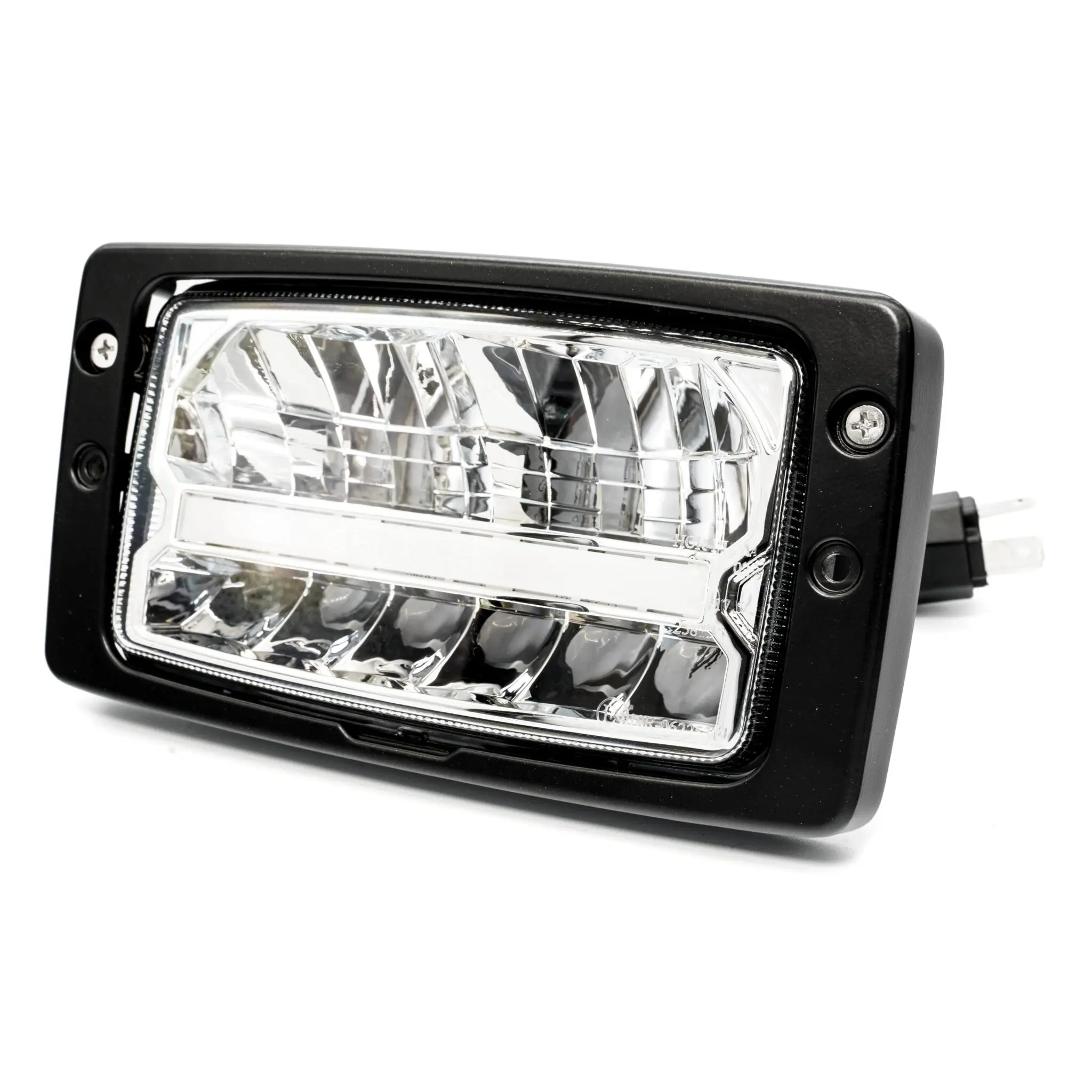 Questo faro a incasso è dotato di un cavo a 3 pin (H4) per anabbaglianti e abbaglianti. È incluso anche un cavo separato per la luce di parcheggio, che può essere installato secondo necessità. Se il trattore non è dotato di luci di parcheggio, è necessario predisporle autonomamente.